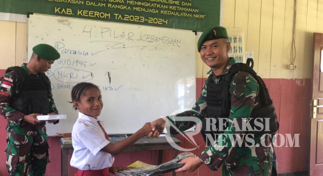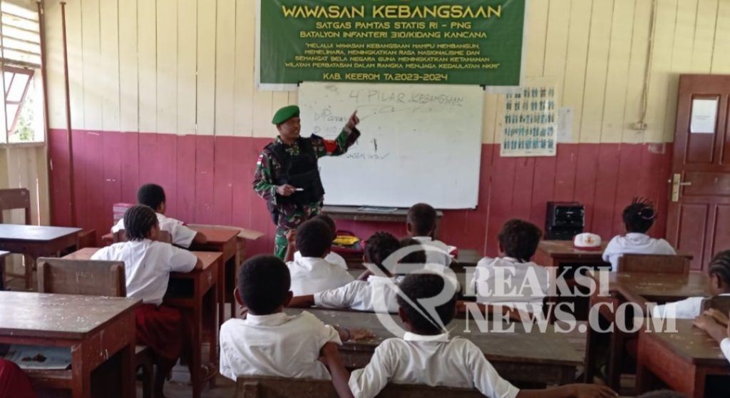 ReaksiNews.com || Keerom – Tanamkan dan tumbuhkan rasa cinta tanah air sejak dini kepada generasi penerus bangsa, Satgas Yonif 310/KK memberikan wawasan kebangsaan kepada siswa-siswi SDN Inpres Yabanda di Kampung Yabanda, Distrik Yaffi, Kabupaten Keerom, Papua, Selasa (28/5/2024).