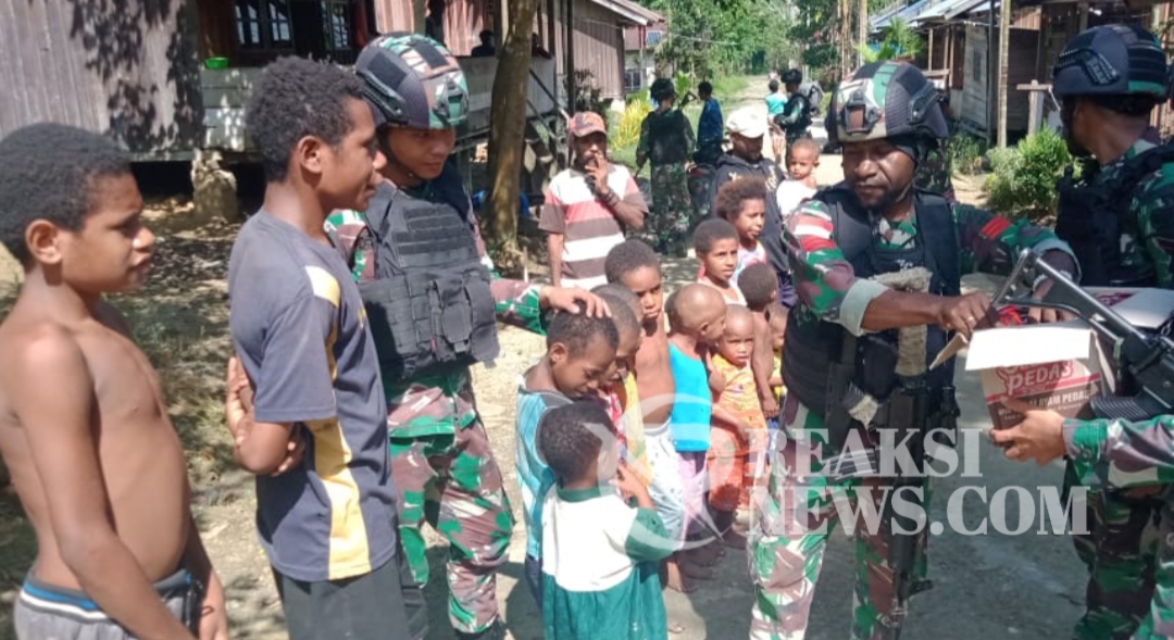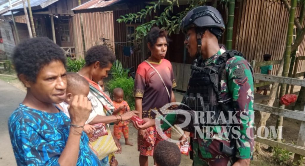 ReaksiNews.com || Keerom – Sebagai bentuk kepedulian terhadap warga sekitarnya, Pos Kalipao Satgas Pamtas RI-PNG Yonif 310/KK kunjungi warga memberikan bantuan sembako berupa beras dan mie instan di Kampung Yuwainda, Distrik Waris, Kabupaten Keerom, Papua, Kamis (30/5/2024).