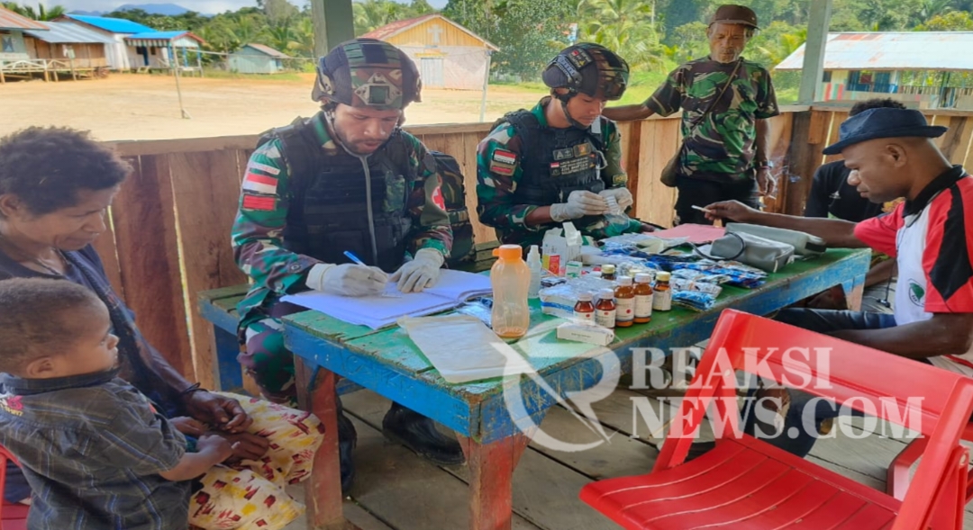 ReaksiNews.com || Keerom – Dalam mewujudkan masyarakat Papua yang sehat, Pos Tatakra Satgas Yonif 310/KK rutin memberikan pelayanan kesehatan secara gratis kepada masyarakat di Kampung Tatakra, Distrik Web, Kabupaten Keerom, Papua, Jumat (31/5/2024).