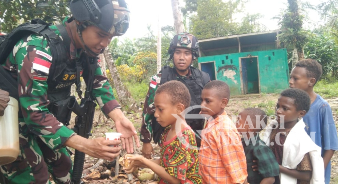RealsiNews.com || Keerom – Sebagai bentuk kepedulian terhadap kesehatan serta tumbuh kembang anak-anak di Perbatasan RI-PNG, Pos Yuruf Satgas Yonif 310/KK kunjungi warga kampung serta bagikan susu dan biskuit kepada anak-anak di Kampung Yuruf 2, Distrik Yaffi, Kabupaten Keerom, Papua, Minggu (2/6/2024).