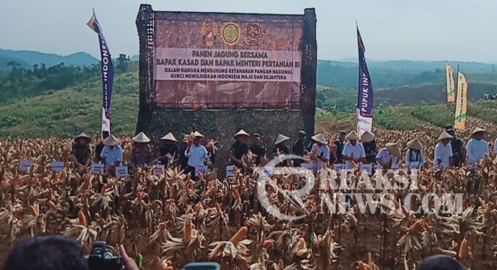 ReaksiNews.com || Sukabumi – Kepala Staf Angkatan Darat (KSAS) Jenderal Maruli Simanjuntak dan Menteri Pertanian (Mentan) Andi Amran Sulaiman, melakukan panen singkong dan jagung di lokasi ketahanan pangan (Hanpangan) Kostrad di Neglasari, Kecamatan Ciemas, Kabupaten Sukabumi, Jawa Barat, Selasa (4/6/2024).