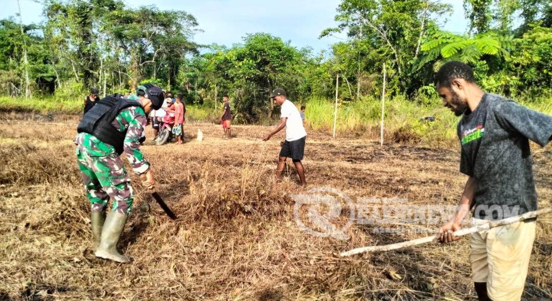 ReaksiNews.com || Keerom – Sebagai bentuk dukungan kepada warga akan tersedianya sarana olahraga, Pos Yuruf Satgas Yonif 310/KK ajak warga lakukan karya bhakti bersihkan lahan tidur untuk dijadikan lapangan sepak bola di Kampung Yuruf, Distrik Web, Kabupaten Keerom, Papua, Rabu (12/6/2024).