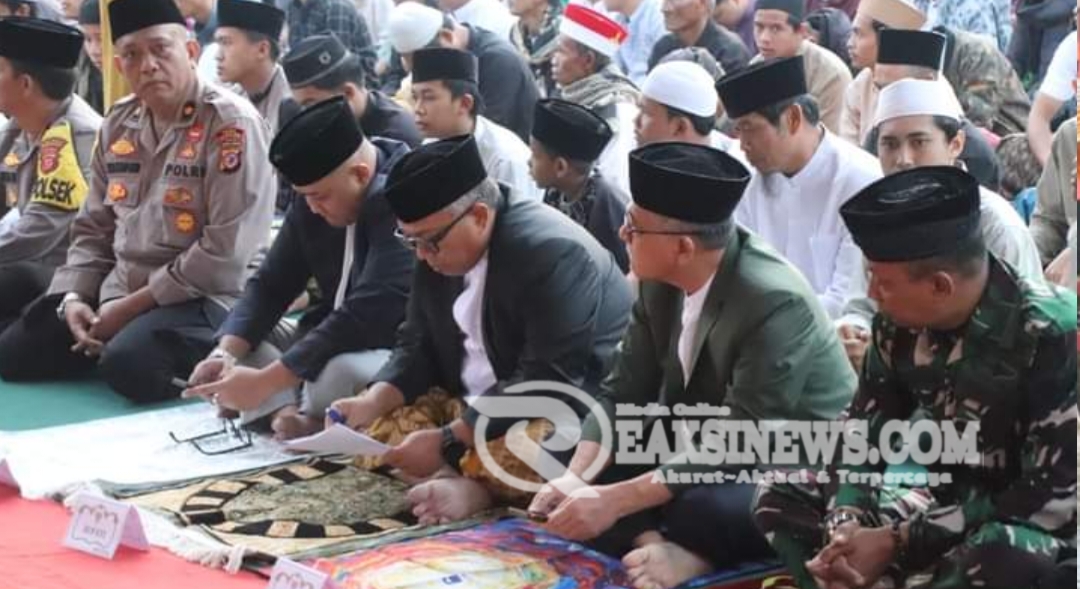 ReaksiNews.com || Sukabumi – Bupati Sukabumi H.Marwan Hamami beserta Wakil Bupati, Ketua DPRD, Plt. Sekda dan Forum Koordinasi Pimpinan Daerah (Forkopimda) melaksanakan Shalat Idul Adha 1445 Hijriah di Lapang Ponpes Attaufiqiyyah Kec Sukalarang, Senin 17 Juni 2023.