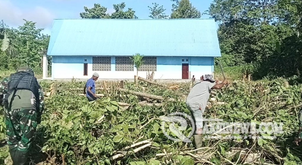 ReaksiNews.com || Keerom – Kebersihan lingkungan merupakan salah satu faktor kenyamanan dalam beribadah, Pos Bompay Satgas Yonif 310/KK bersama masyarakat bersihkan Gereja Santo Paulus di Kampung Bompay, Distrik Waris, Kabupaten Keerom, Papua, Kamis (20/6/2024).