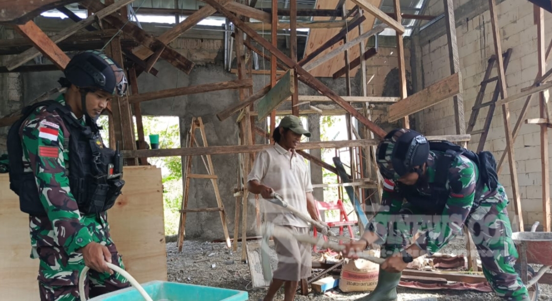 “Terima kasih personil Satgas TNI, dengan kehadiran bapak-bapak TNI disini dapat meringankan pekerjaan, sehingga proses pengerjaan dapat dilakukan dengan cepat,” tutur Daud Yunam.