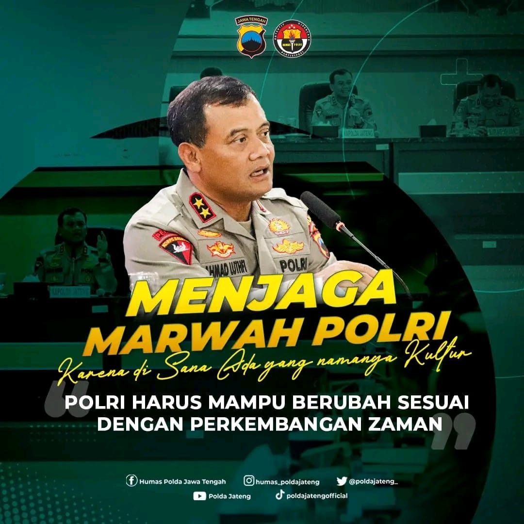 Kapolda Jateng menyoroti bahwa keberhasilan Polri dalam menjaga marwahnya sebagai institusi yang presisi tergantung pada kemampuan institusi dan personelnya untuk berubah mengikuti perkembangan situasi dan kondisi saat ini.