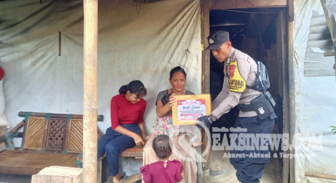 ReaksiNews.com || Bhabinkamtibmas Kelurahan Sindangsari Bripka Faizal.Asobirin melaksanakan giat penyaluran Bansos dalam rangka memperingati HUT Bhayangkara Ke 78 terhadap Warga An.Ibu Fitria Kp.beugeg RW.01 Kel Sindangsari, Selasa (25/6/24).