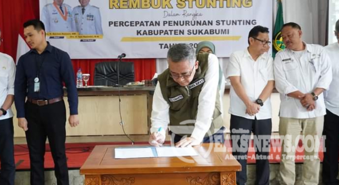 ReaksiNews.com || Sukabumi – Pemerintah Kabupaten Sukabumi terus berupaya menurunkan angka stunting. Sebagai bentuk keseriusan, pimpinan daerah Kabupaten Sukabumi berkumpul bersama sejumlah stakeholder untuk berembug menurunkan angka stunting seperti forkopimda, kepala perangkat daerah, hingga pihak terkait lainnya.