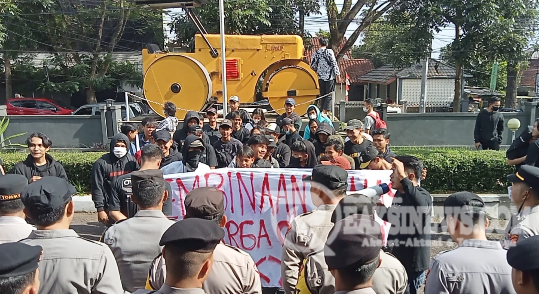 Setiba di lokasi, mereka langsung berorasi. Aksi saling dorong antara pendemo dengan pihak Kepolisian dari Polres Sukabumi Kota, tak bisa dihindari. Bahkan, mereka telah merangsak dan merusak pintu masuk dan pintu ke luar kantor tersebut.