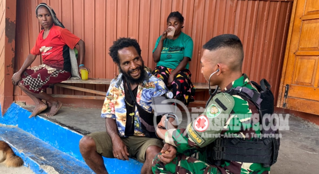 Pada kesempatan itu, Danpos (Komandan Pos) Okbibab Letda Inf Falty Suangro Sagala beserta Tim Kesehatan Satgas berkeliling kampung melakukan pengecekan kesehatan dan pengobatan kepada setiap warga yang ditemuinya.