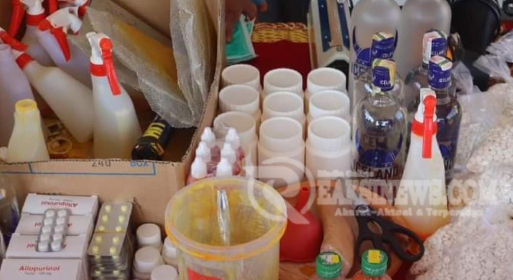 Kapolres Cianjur AKBP Aszhari Kurniawan, S.H., S.I.K., M.Si, mengungkapkan, barang bukti yang berhasil diamankan selain dari peralatan pembuatan atau produksi, juga diamankan barang bukti yang sudah jadi dari home industri tersebut sebanyak kurang lebih 55.000 butir (OKT).