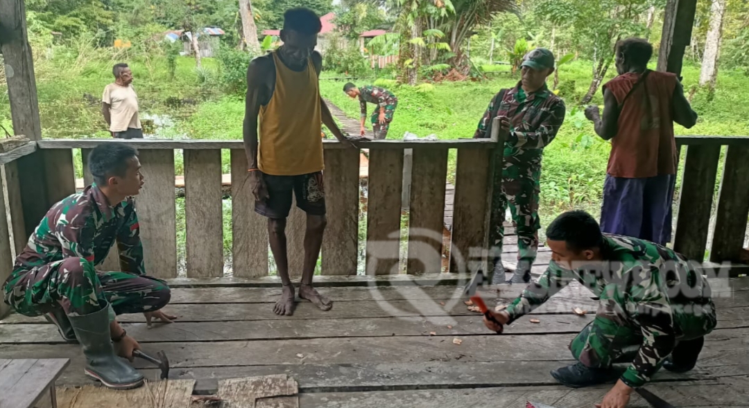 TNI Task Forces Initiated Communal Work To Repair The Rimba School Building, Welcomed Enthusiastically By The Mumugu Residents