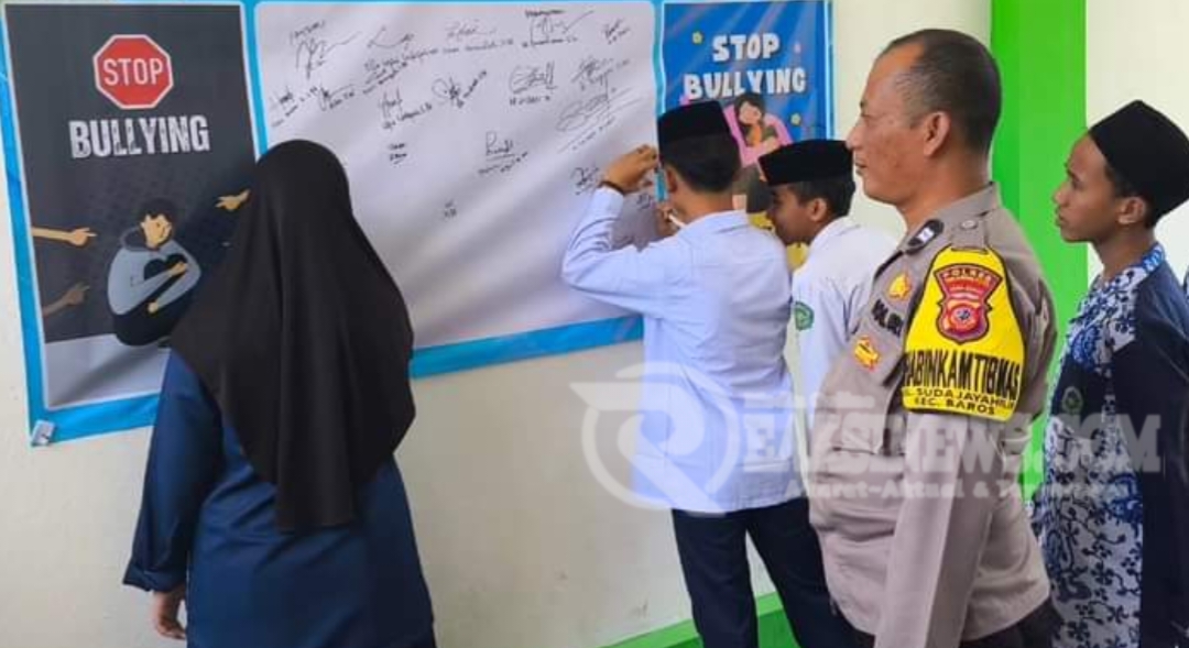 ReaksiNews.com || Polsek Baros melalui Bhabinkamtibmas Sudajayahilir hadir dalam kegiatan MPLS dan Deklarasi anti bullying SMP Boarding School As Sakinah.