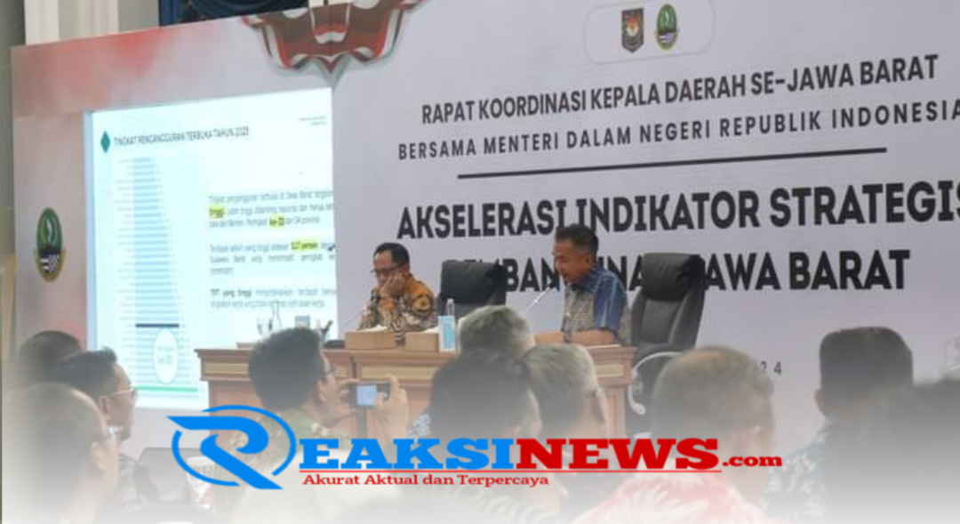 ReaksiNews.com || Menteri Dalam Negeri RI, M. Tito Karnavian memimpin Rapat Koordinasi Kepala Daerah dengan mengusung Tema “Sinergi Pemerintah Dalam Pencapaian Indikator Strategis Pembangunan di Provinsi Jawa Barat. Rakor berlangsung di Aula Barat Gedung Sate Bandung, Jumat 19 Juli 2024.