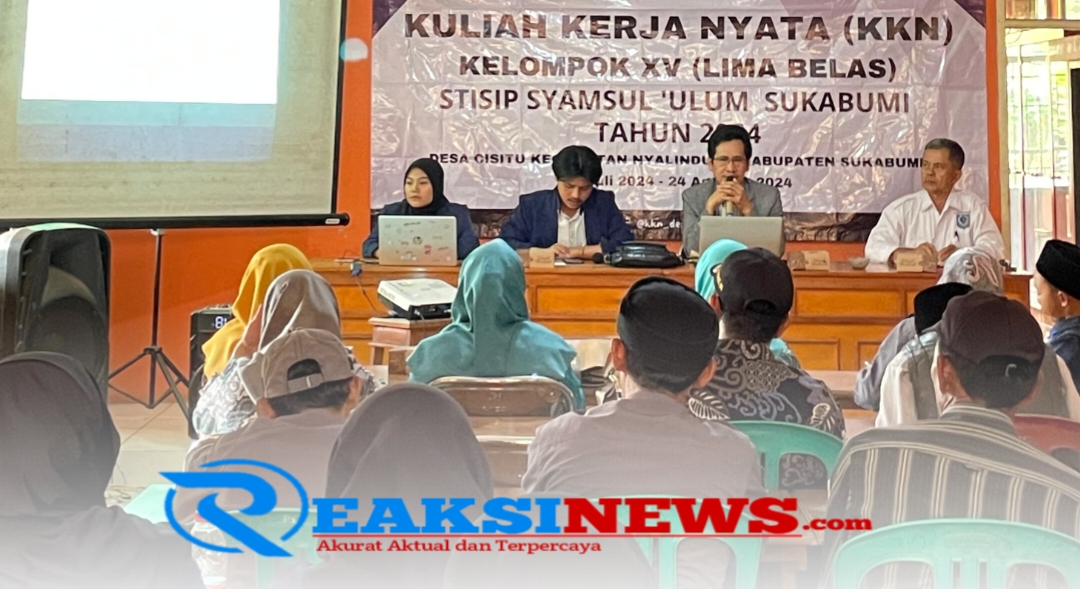ReaksiNews.com Mahasiswa STISIP Syamsul Ulum Sukabumi dalam kegiatan Program Mangsarkum (Masyarakat Ngerti Jeung Sadar Hukum) KKN (Kuliah Kerja Nyata) dilaksanakan di Aula Desa Cisitu Kecamatan Nyalindung Kabupaten Sukabumi, Rabu (31/7/2024).
