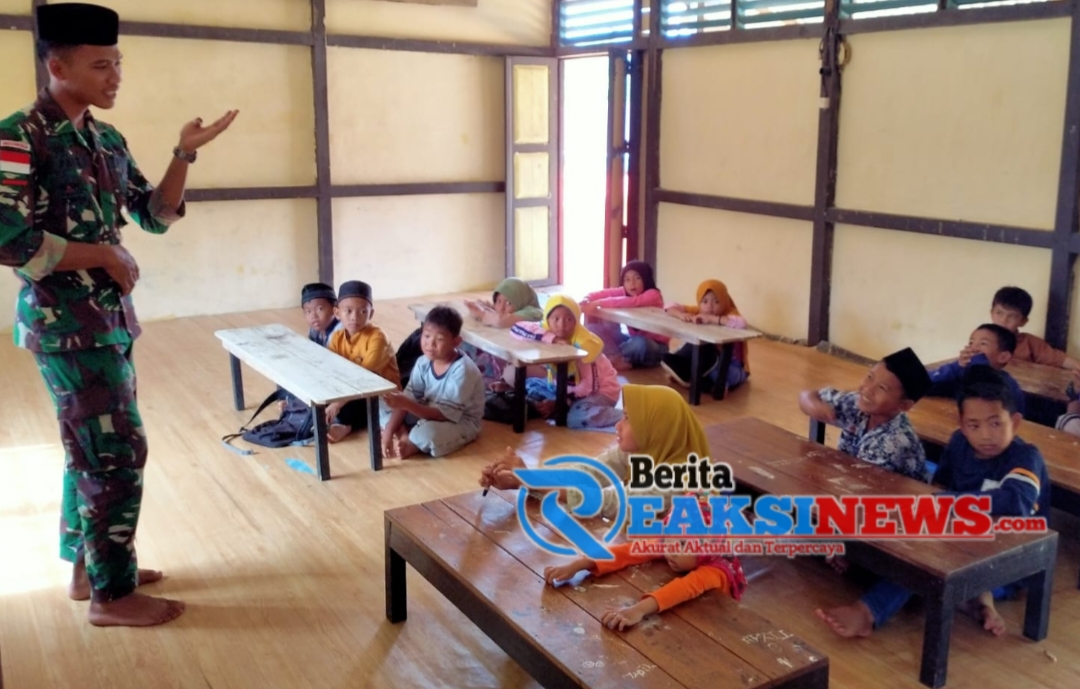 ReaksiNews.com || Sintang – Membentuk pondasi iman sejak dini, Satgas Pamtas RI-Malaysia Yonzipur 5/ABW Pos Kout (Komandan Utama) Mengajar TPA (Taman Pendidikan Al-Qur’an) kepada anak-anak yang masih berusia 10 tahun ke bawah di desa Ketungau Hulu, Kecamatan Senaning, Kabupaten Sintang. Kamis, (1/8/2024).