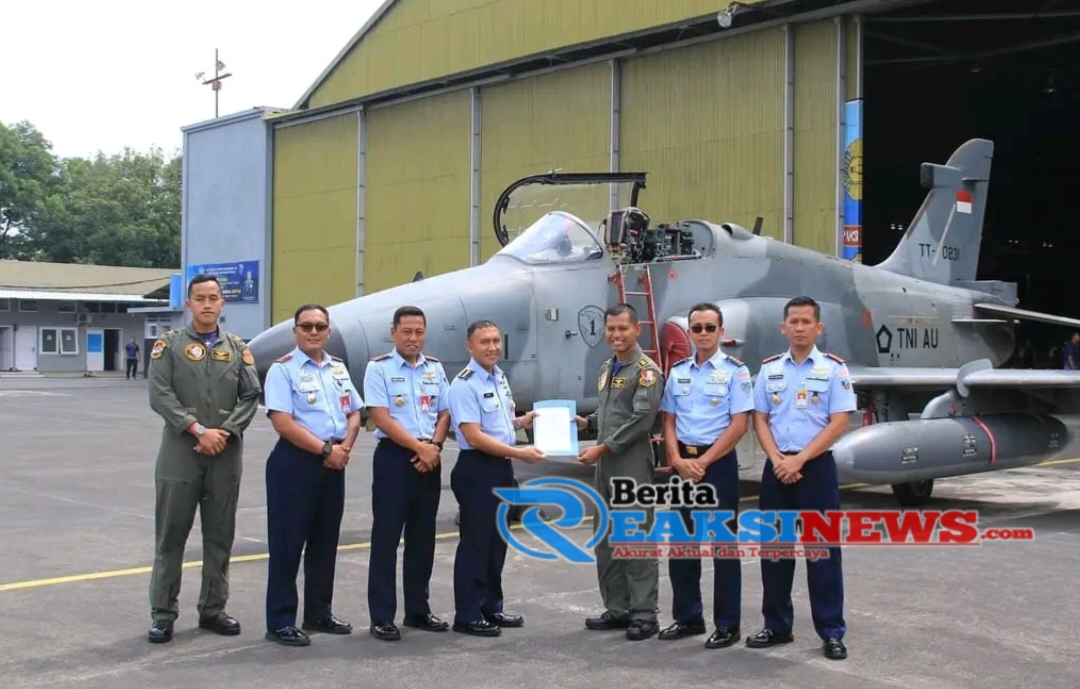 ReaksiNews.com || Pesawat Hawk Mk-209 Nomor Registrasi TT-0231 dari Skadron Udara 1, Lanud Supadio yang diawaki oleh Letkol Pnb Dedi “Kingbee” Andres tiba di Sathar 32, Depohar 30 untuk melaksanakan rangkaian pemeliharaan tingkat berat Major Servicing.