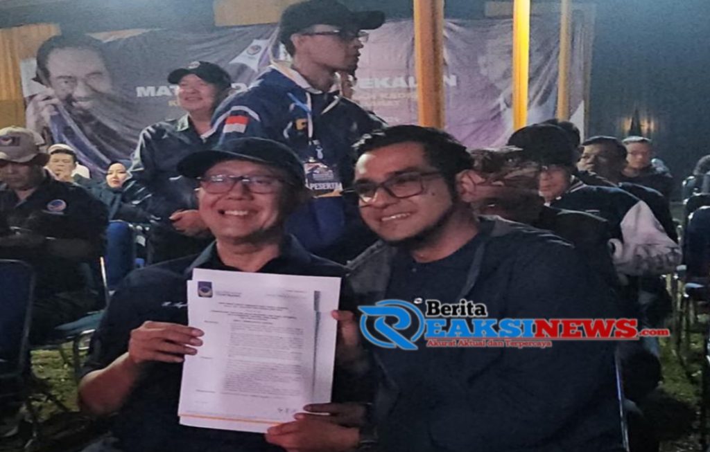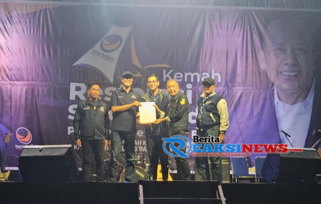 ReaksiNews.com || Ketua Dewan Pimpinan Wilayah (DPW) Partai NasDem Jawa Barat Saan Mustopa menyerahkan dokumen B1-KWK kepada tujuh calon kepala daerah di Provinsi Jawa Barat, Sabtu (10/8/2024).