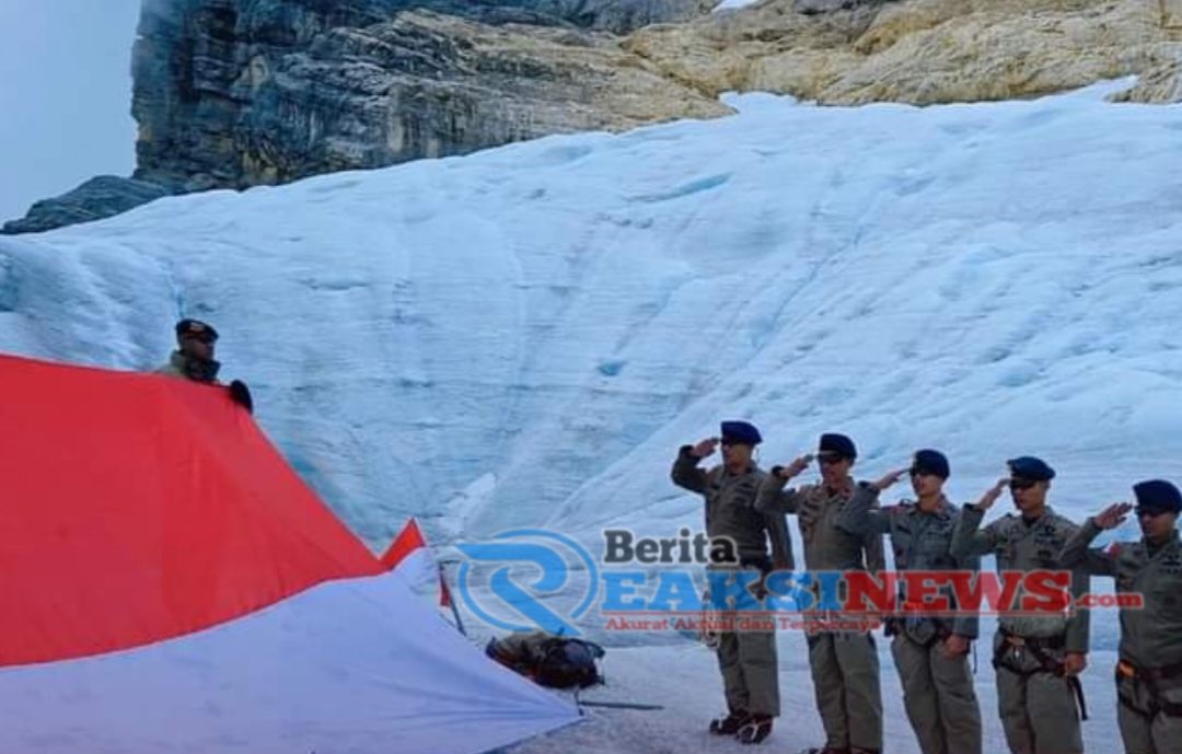 ReaksiNees.com || Timika, Papua – Salah Satu personel Brimob Polda Jabar, Bharaka M. Imron Ali Basya, berhasil mengibarkan bendera merah putih di puncak Gunung Jayawijaya, Papua, pada 17 Agustus 2024 bersama dengan 18 Personil Gabungan dari Satgas Damai Cartenz, Amole dan Brimob Polda Papua. Pendakian ini dilakukan dalam rangka Pengibaran Bendera Merah Putih memperingati HUT RI-79.