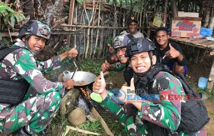 “Saya sangat senang dengan kedatangan Bapak-bapak TNI di kebun kami dan mau merasakan masakan tradisional Papua. Mereka sangat baik dan selalu membantu kami di kampung ini,” tutur Maria.