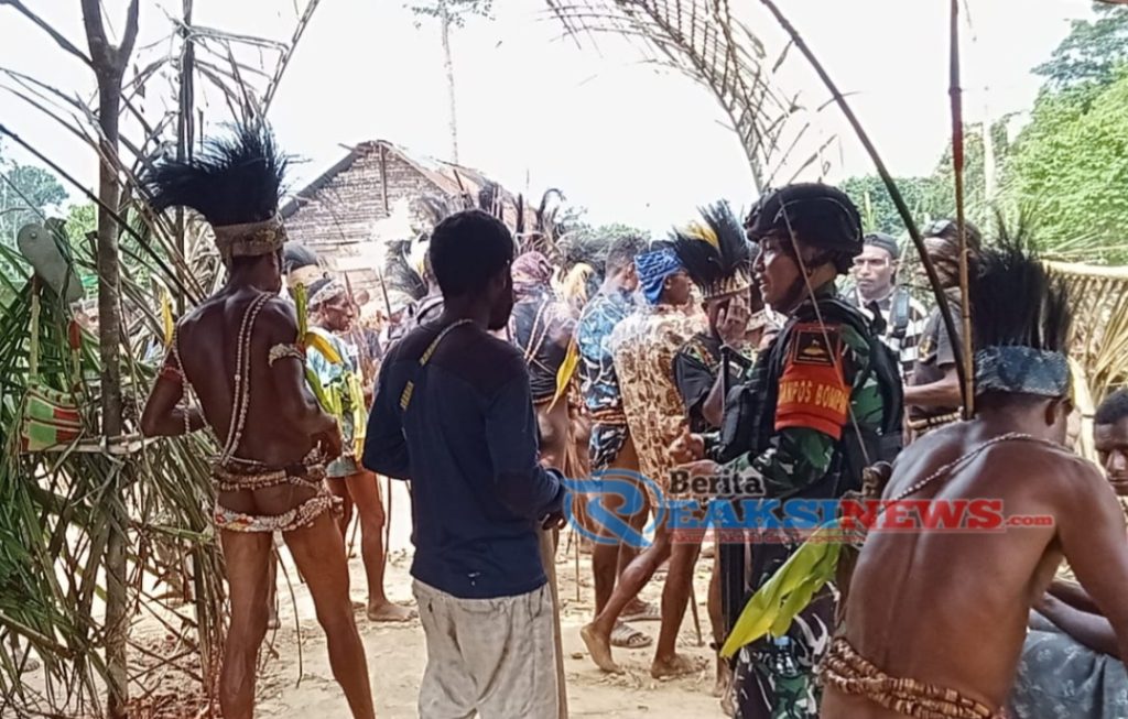 ReaksiNews.com || Keerom – Dalam rangka melestarikan tradisi budaya yang merupakan kearifan lokal di bumi Cendrawasih, Pos Bompay Satgas Yonif 310/KK hadir dan sukseskan pesta adat Suku Swo di Kampung Bompay, Distrik Waris, Kabupaten Keerom, Senin (26/8/2024).