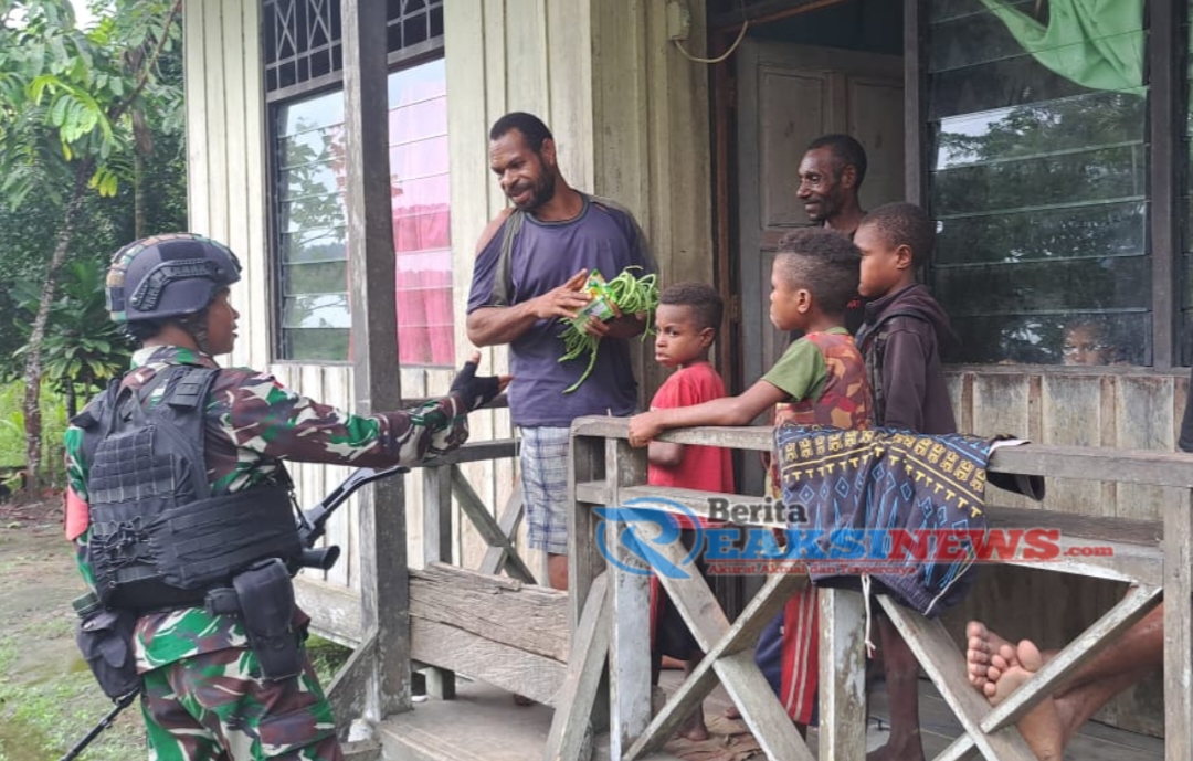 ReaksiNews.com || Pegunungan Bintang – Kepedulian terhadap masyarakat khususnya di wilayah perbatasan, sekaligus sebagai bentuk rasa syukur atas berkat yang diberikan Tuhan Yang Maha Esa, Pos Batom Satgas Yonif 310/KK membagikan hasil panen berupa kacang panjang kepada masyarakat di Kampung Batom, Distrik Batom, Kabupaten Pegunungan Bintang, Papua, Senin (2/9/2024).
