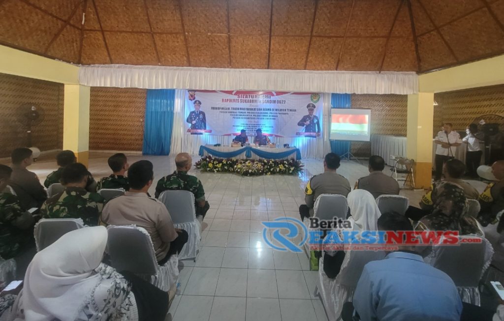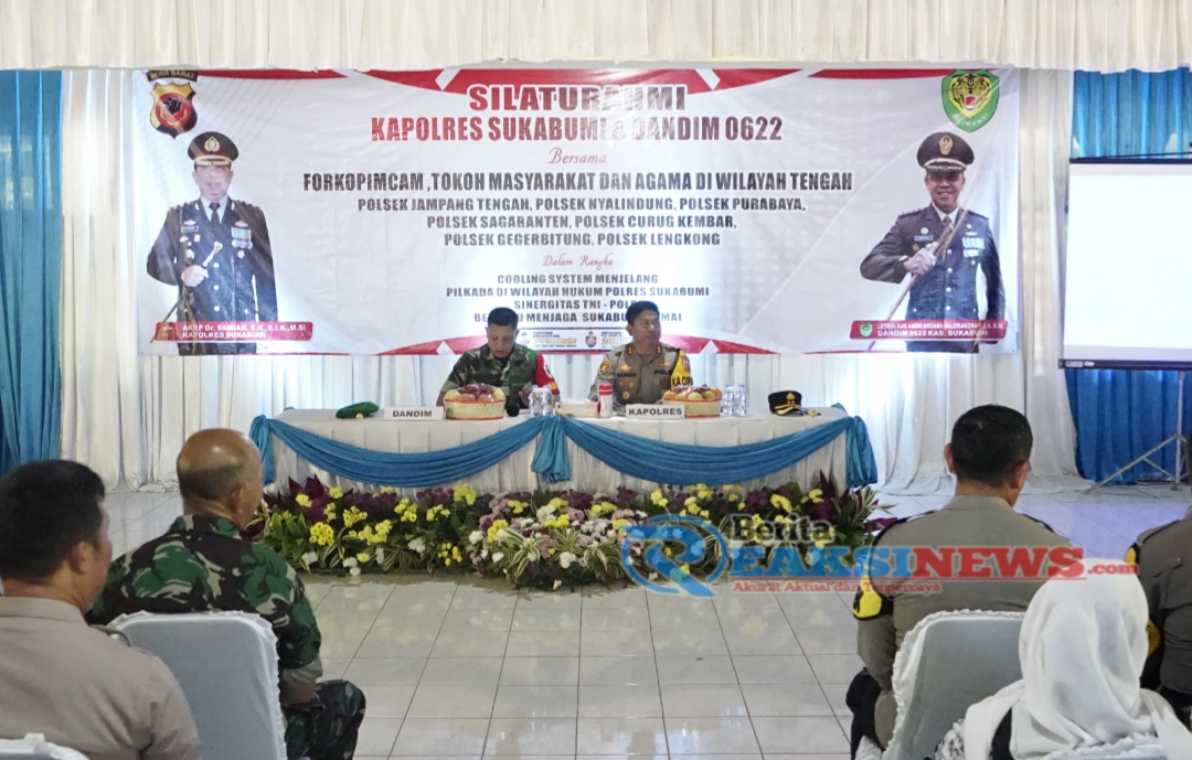 ReaksiNews.com || Guna menjaga kondusifitas wilayah daerah pemilihan 5 terdiri Kecamatan Jampangtengah, Nyalindung, Lengkong, Pabuaran, Purabaya, Gegerbitung, Sagaranten, Curugkembar dan Cidadap. Polres dan Kodim 0622 Sukabumi, gelar silaturahmi bersama tokoh masyarakat dan agama wilayah dapil 5, digelar aula Balai Diklat kehutanan Jampangtengah, Desa Sindangresmi, Kecamatan Jampangtengah, Kabupaten Sukabumi, Jawa Barat, pada Rabu (4/9/24).