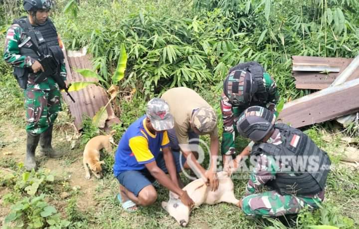 ReaksiNews.com || Keerom – Memberikan solusi dalam mengembangkan ternaknya, Pos Yuruf Satgas Yonif 310/KK lakukan pendampingan membantu warga perbatasan dalam memeliharan ternak babi di Kampung Yuruf, Distrik Yaffi, Kabupaten Keerom, Papua, Rabu (11/9/2024).