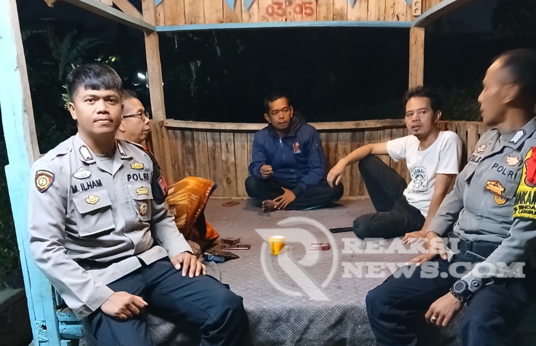 Petugas Patroli QR 5307 A/ B dialogis dengan warga yang melaksanakan siskamling serta pemantauan giat masyarakat dan memberikan himbauan kamtibmas untuk selalu menjaga kewaspadaan.