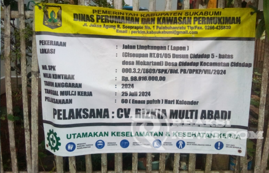 ReaksiNews.com || Sukabumi – Realisasi Pekerjaan jalan lingkungan ( Jaling ) di Kampung Ciseupan RT 01/05 Dusun Cidadap 5 tepatnya diperbatasan Desa Mekartani Desa Cidadap Kecamatan Cidadap Kabupaten Sukabumi jadi sorotan banyak pihak.