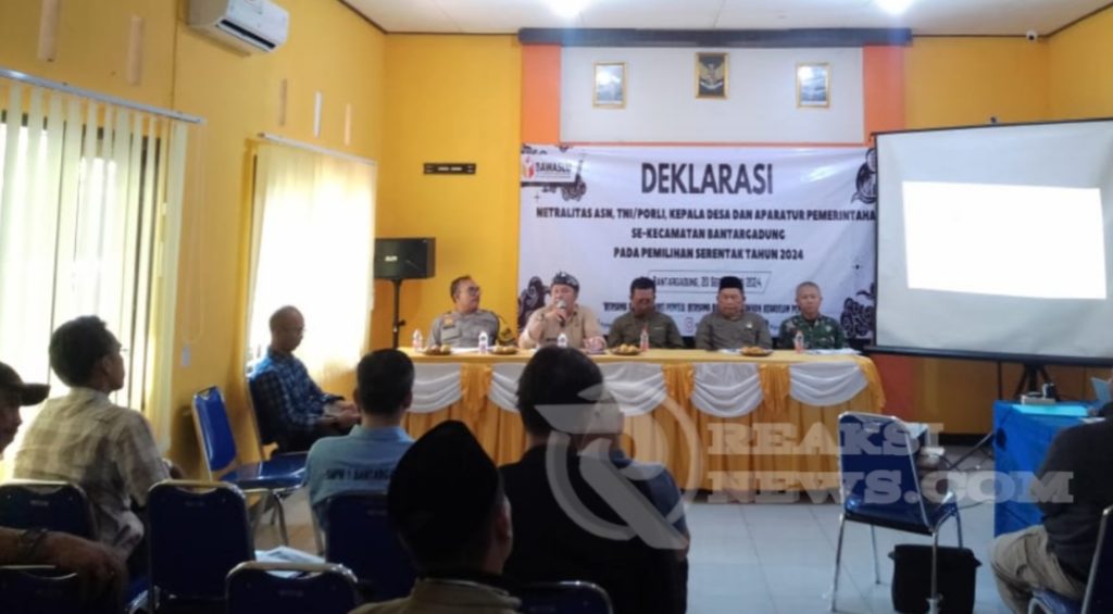 ReaksiNews.com || Sukabumi – Babinsa Koramil 2203/Warungkiara Kodim 0622/Kabupaten Sukabumi Sersan Kepala (Serka) Agus Subandar mengikuti kegiatan Sosialisasi Perundang-undangan terkait Pengawasan Netralitas TNI, Polri, ASN, dan para kades dalam rangka pemilihan pilkada Tahun 2024 yang Laksanakan di Aula Kecamatan Bantargadung, Jum’at (20/9/2024).