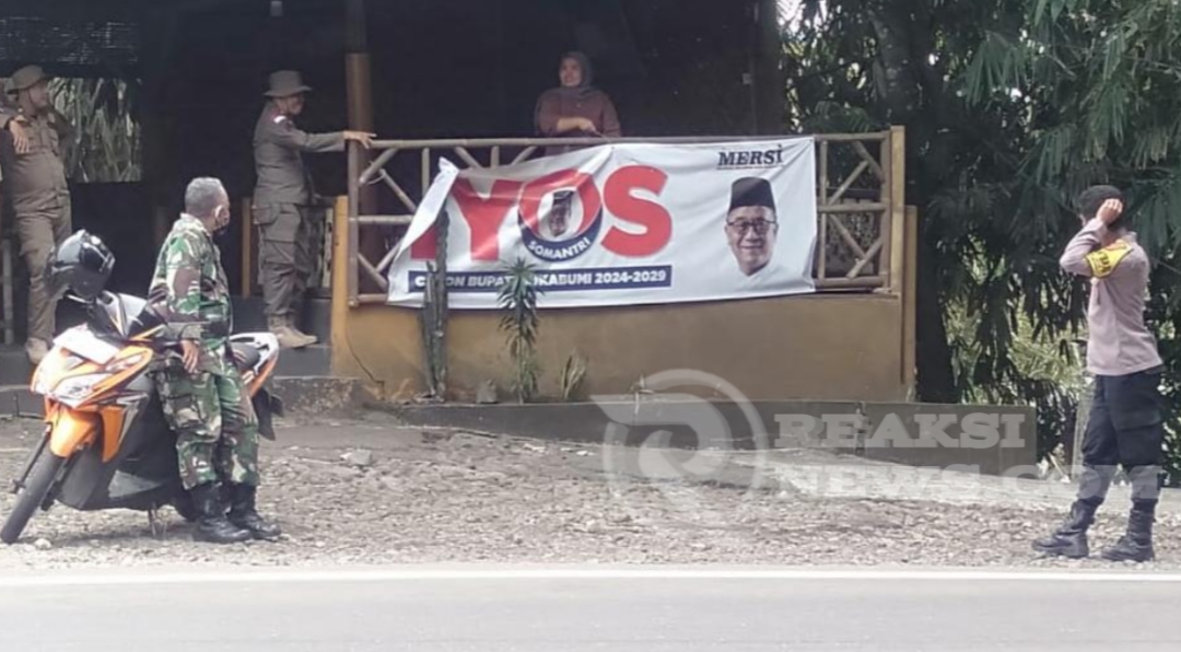 ReaksiNews.com || Sukabumi – Aparat Gabungan Jajaran Koramil 2203/Warungkiara bersama Dua anggota Polsek Warungkiara mengawal penurunan Alat Peraga Sosial (APS) Partai Politik yang terpasang di sepanjang ruas Jalan di wilayah Kecamatan Warungkiara, Selasa (24/9/2024).
