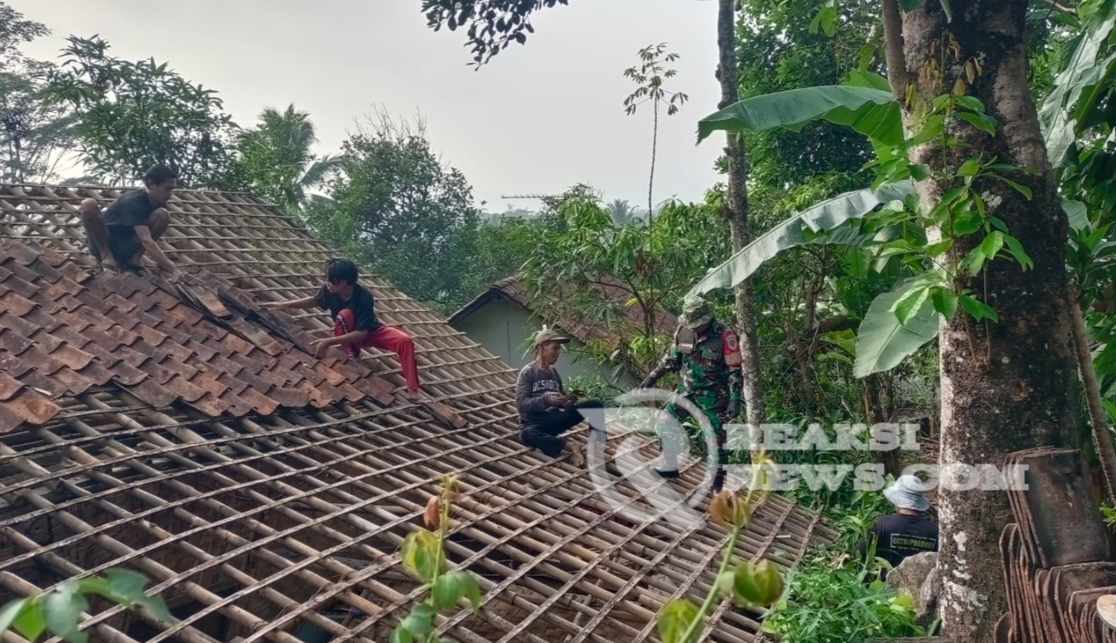Rumah yang terdampak angin puting beliung di desa tersebut, dengan kerugian materil genting rumah jatuh berserakan, dengan kejadian tersebut anggota Koramil 2203/Warungiara melalui Babinsa bersama Warga kerja bakti gotong-royong membantu pembenahan rumah warga korban terdampak.