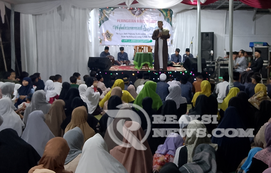 ReaksiNews.com || Sukabumi – Peringatan Maulid Nabi Muhammad SAW, mengusung tema “Belajar dari Akhlak Nabi Untuk Diamalkan Demi Kehidupan yang Lebih Baik”