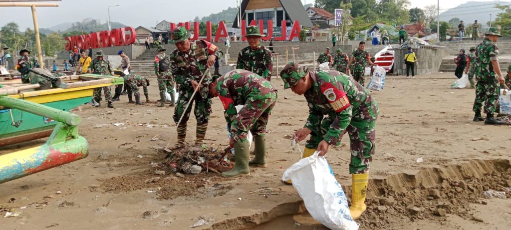Setelah memberikan sambutan dilanjutkan dengan kegiatan penanaman pohon dan pembersihan pantai yang melibatkan ± 150 orang personil gabungan terdiri dari Personil Kodim 0622/Kab. Sukabumi, Polres Sukabumi, Pol PP Kab Sukabumi, Pos AL/ Plara, DLH Kab. Sukabumi, Perkim Kab Sukabumi, PU Kab. Sukabumi, DPMD Kab Sukabumi, Unsur Aparatur kelurahan / Desa Palabuhanratu, PLTU II Jabar Palabuhanratu, BRI Palabuhanratu, Pramuka Saka bhayangkara Kab Sukabumi, Unsur, Masyarakat, Karang Taruna, Relawan Se Kec. Palabuhanratu dan Persit Kartika Chandra Kirana Cabang XLV Dim 0622, serta dalam kegiatan kali ini kita menggunakan 2 Unit Truk Sampah milik DLH Kab. Sukabumi.