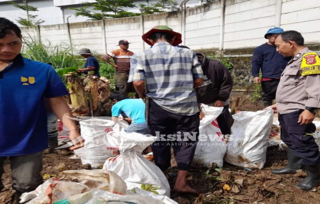 Melihat kekompakan warga binaannya Bhabinkamtibmas Jayamekar Aiptu Yudi, P terjun membantu bahu membahu dengan warganya memperbaiki kerusakan jebol yang jebol pasca hujan.