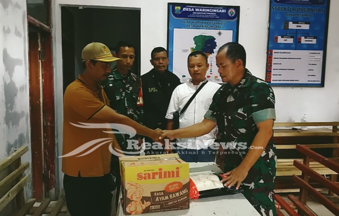 Penyaluran bantuan sembako berupa beras 450 kg dan mie instan sebanyak 6 dus diberikan oleh Kepala Staf Kodim (Kasdim) 0608/Cianjur Mayor Arm Nanda Supriyatna kepada kepala dapur umum Desa Waringinsari, Imat Iskandar, di Aula Desa Waringinsari.