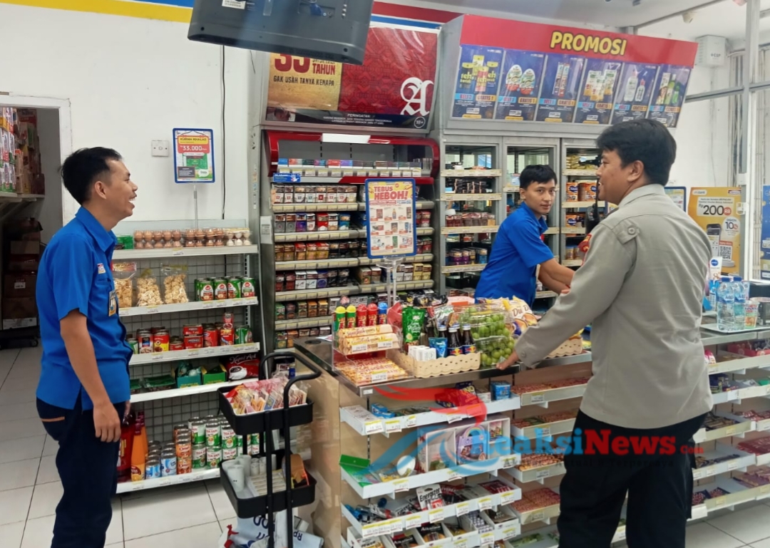 Dalam kegiatan patroli ke pertokoan anggota Polsek Lembursitu menyempatkan sambang ke toko Alfamart dan dialogis dengan karyawan Alfamart.