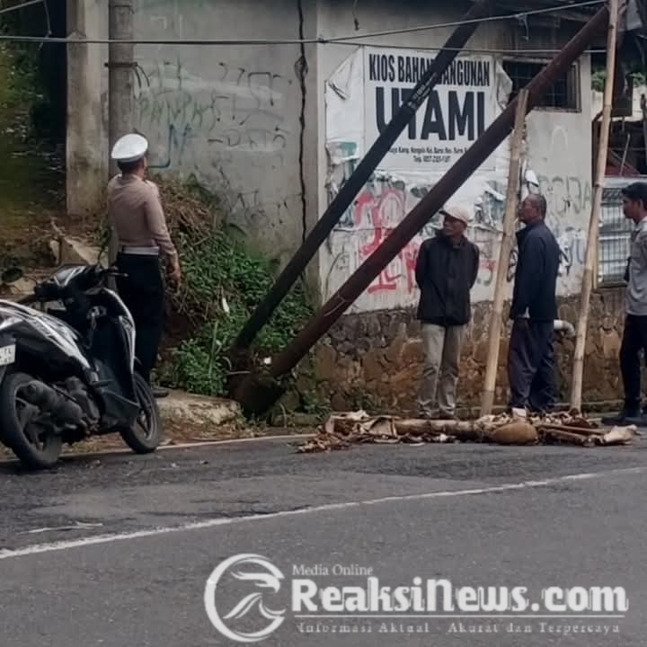Sukabumi || Reaksinews.com – Polsek Baros Polres Sukabumi Kota. Laksanakan evakuasi tiang kabel internet yang hampir roboh melintang sehingga mengakibatkan arus lalulintas tersendat kemaceta di kedua arah Jl. Raya Baros Kp. Nangela Rt. 01 Rw. 07 Kelurahan Baros Kecamatan Baros Kota Sukabumi. Senin, 13 Januari 2025. Pukul 11.40 Wib.