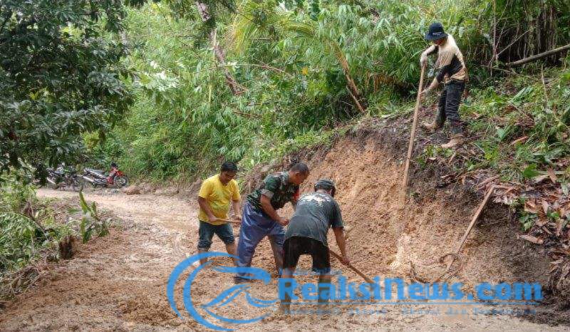Bersama dengan warga setempat, Serka Subagio melaksanakan kerja bakti yang juga diikuti oleh warga setempat. Mereka membersihkan jalan sebagai upaya konkret dalam menjaga kebersihan lingkungan.