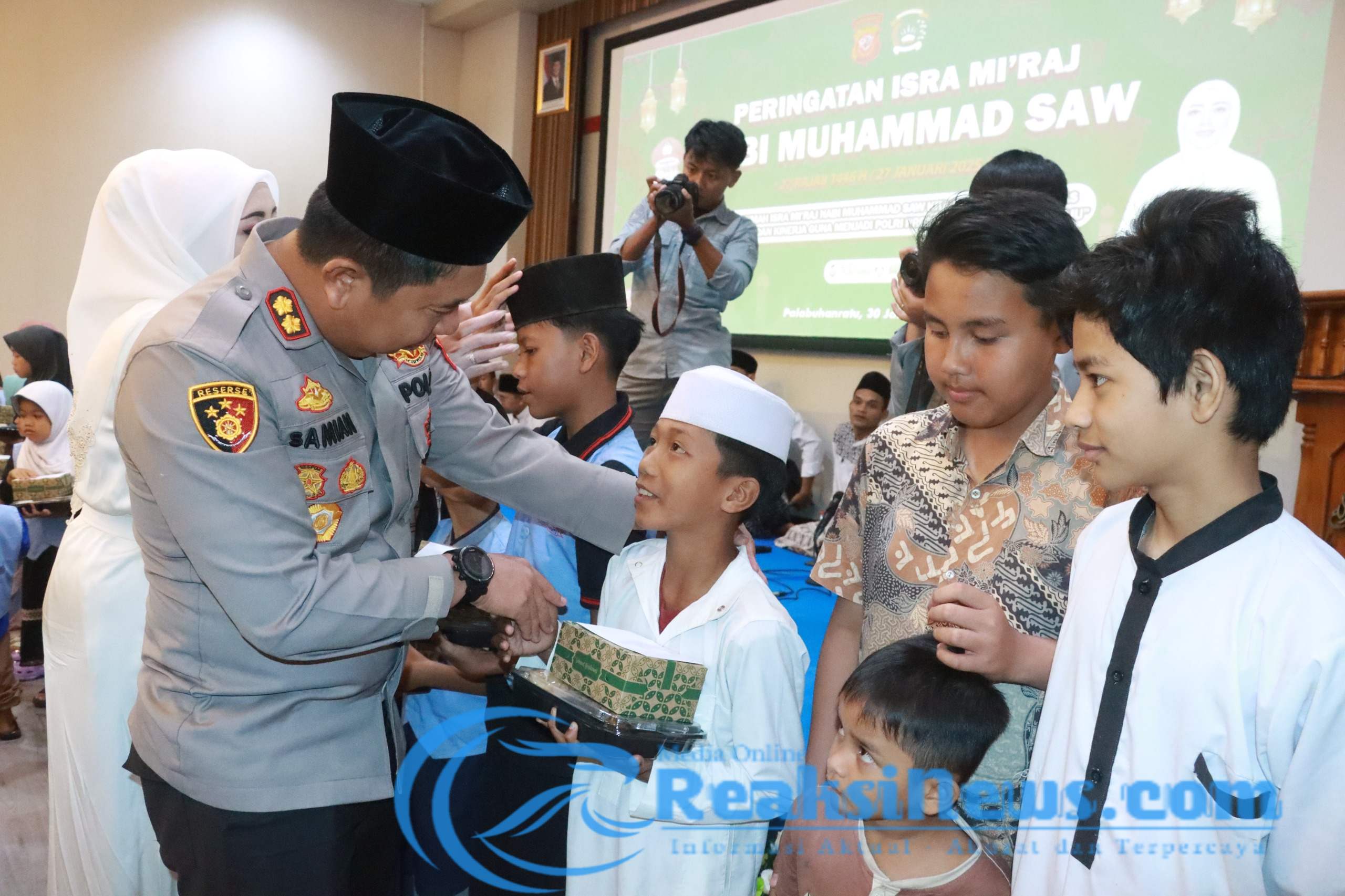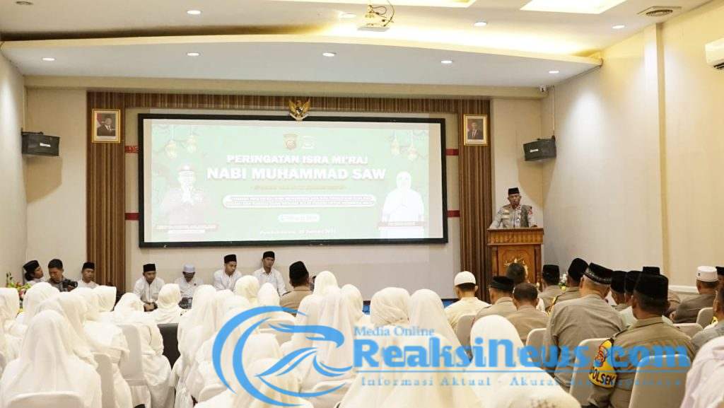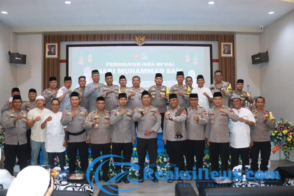 Reaksinews.com || Sukabumi – Polres Sukabumi menggelar peringatan Isra’ Mi’raj Nabi Muhammad SAW 1446 H di Aula Rupatama Wicaksana Laghawa pada Kamis (30/1/2025). Kegiatan ini dihadiri oleh Kapolres Sukabumi AKBP Dr. Samian, S.H., S.I.K., M.Si., Ketua Bhayangkari Cabang Sukabumi Ny. Endah Samian, para Pejabat Utama (PJU) Polres Sukabumi, pengurus Bhayangkari, serta para santri dan santriwati dari Pondok Pesantren Al-Mubayyidliyyah.