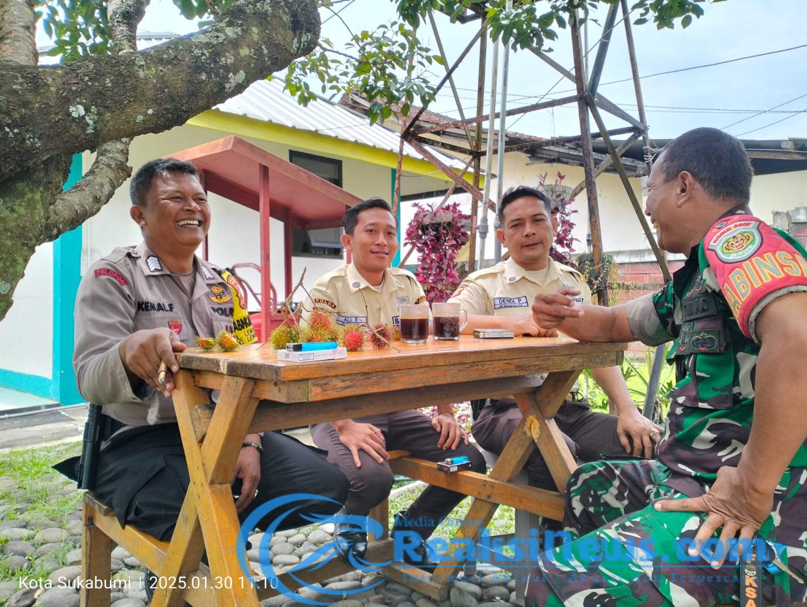 Reaksinews.com || Sukabumi – Bhabinkamtibmas Kel.Lembursitu Polsek Lembursitu Bripka Kemal Faturahman dan Babinsa Sertu Hendro melaksanakan sinergitas TNI-POLRI dialogis dengan Security aset vital negara PT PLN Persero di Kel.Lembursitu, Kamis (30/1/25).