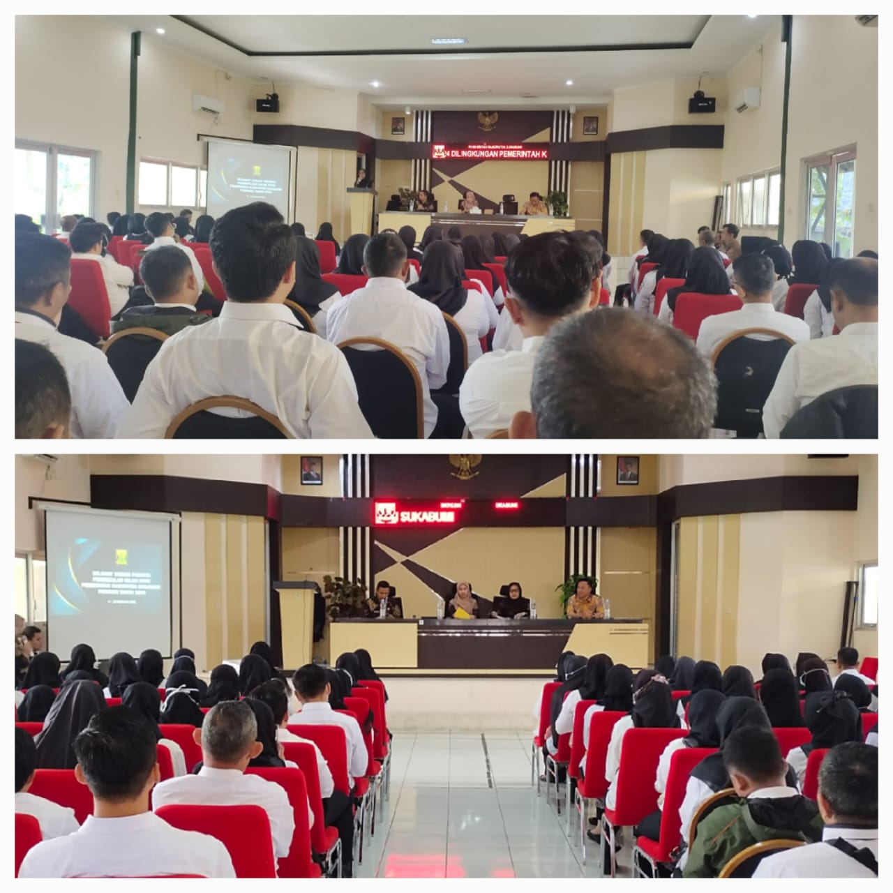 Kegiatan tersebut diikuti oleh 1105 tenaga honorer di lingkungan pemkab sukabumi formasi tahun 2024 bertempat Aula Kantor Bkpsdm Jl. Raya Kadupugur, Cijalingan, Kec. Cicantayan, Kabupaten Sukabumi, Senin (10/02/2025).