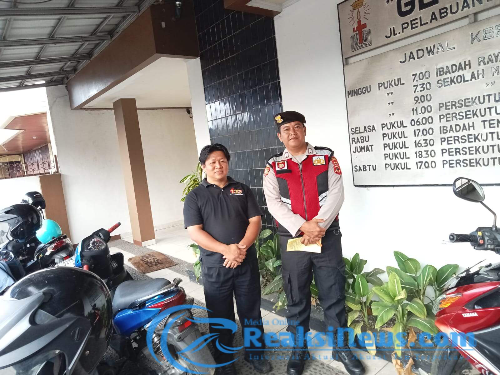 Pengamanan gereja ini rutin di lakukan oleh anggota kepolisan setiap hari minggu