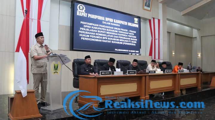 Hal ini tentang Perubahan Nomenklatur dan Perubahan Badan Hukum Perumda Bank Perkreditan Rakyat (BPR) Sukabumi menjadi PT Bank Perekonomian Rakyat Sukabumi (Perseroda). Rapat berlangsung di Aula DPRD Kabupaten Sukabumi pada Senin (10/3/2025).