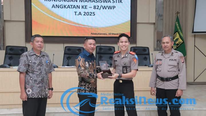 ReaksiNews.com || Sukabumi – Wakil Bupati Sukabumi, H. Andreas menerima kunjungan mahasiswa Sekolah Tinggi Ilmu Kepolisian (STIK) Angkatan ke-82/Widya Wira Pratama TA 2025 di Aula Sekretariat Daerah Kabupaten Sukabumi, Palabuhanratu, pada Kamis (20/3/2025).