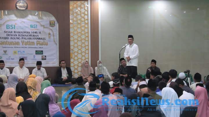 ReaksiNews.com || Sukabumi – Sekretaris Daerah Kabupaten Sukabumi, H Ade Suryaman menyalurkan santunan bagi anak yatim dan warga terdampak bencana dalam rangkaian kegiatan Syiar Ramadhan 1446 Hijriah yang berlangsung di Masjid Agung Palabuhanratu, pada Selasa (25/3/2025).