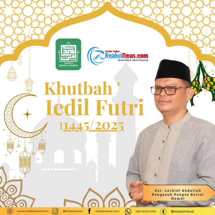 Pagi hari ini kita bersama-sama telah diberikan kenikmatan merayakan Idul Fitri oleh Allah SWT dengan mengumandangkan takbir, tahmid dan tasbih dengan penuh kebahagiaan, setelah melampaui perjuangan puasa selama 1 bulan penuh di bulan Ramadhan. Semoga segala keistimewaan-keistimewaan seperti rahmat (kasih sayang) dan maghfirah (ampunan) dari Allah, serta keberkahan di bulan Ramadhan, kita dapat meraihnya dengan baik. Sejak hari pertama Ramadhan, kita menahan lapar, haus dan segala hawa nafsu, melatih kesabaran demi meraih insan yang bertakwa, yakni kualitas kemanusiaan yang tertinggi di hadapan Allah SWT