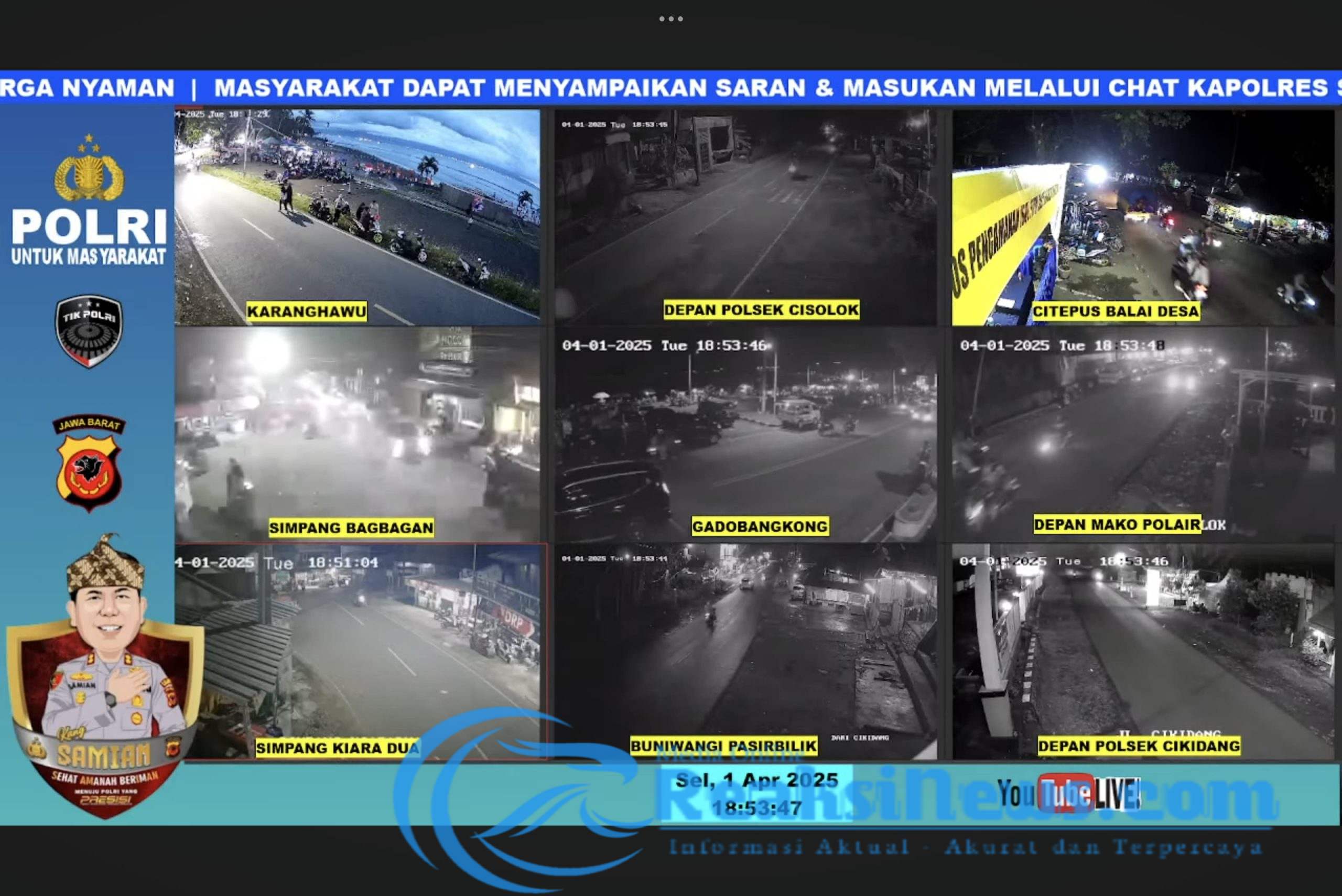 Untuk memudahkan akses informasi, Polres Sukabumi menyediakan siaran langsung CCTV yang dapat diakses oleh masyarakat melalui kanal YouTube resmi Polres Sukabumi.