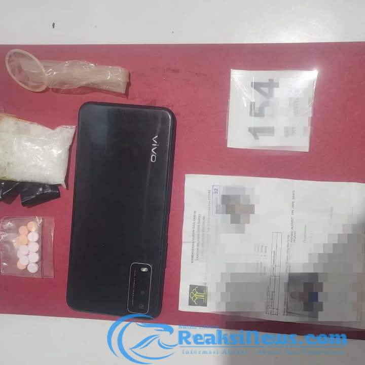 Sejumlah barang bukti berupa narkotika jenis Sabu seberat 14,12 gram dan 15 butir obat keras terbatas yang disembunyikan dalam sebuah alat kontrasepsi dan 1 unit telepon genggam turut diamankan ke Mapolres Sukabumi Kota.